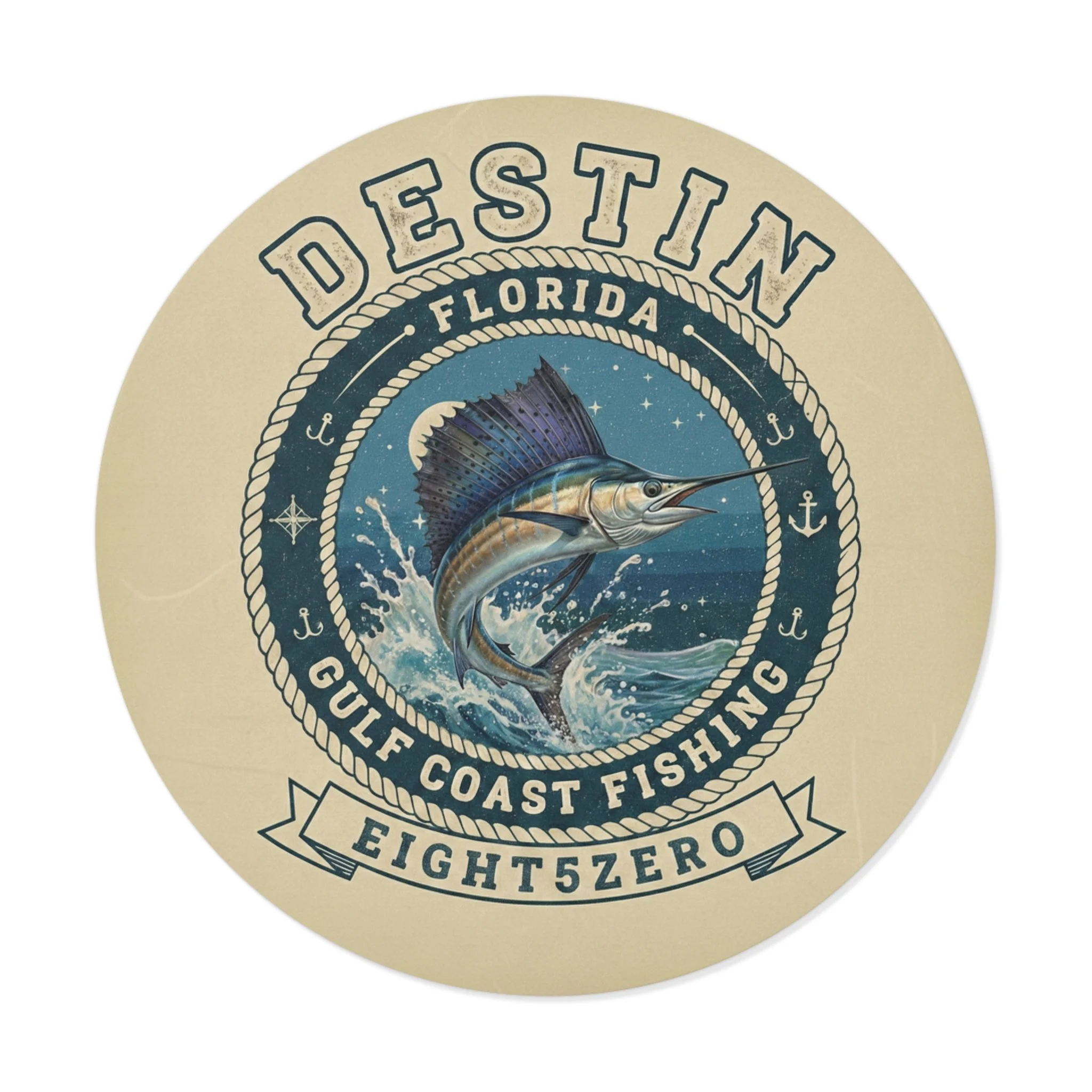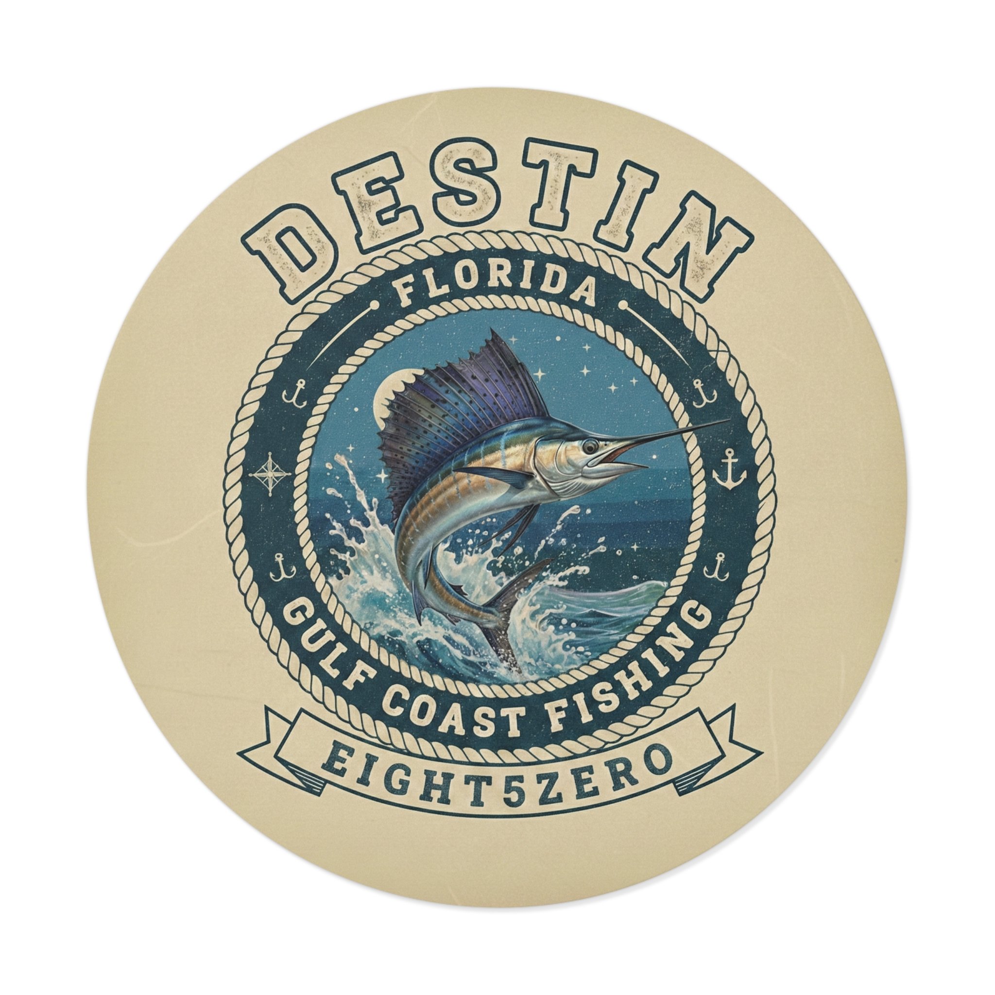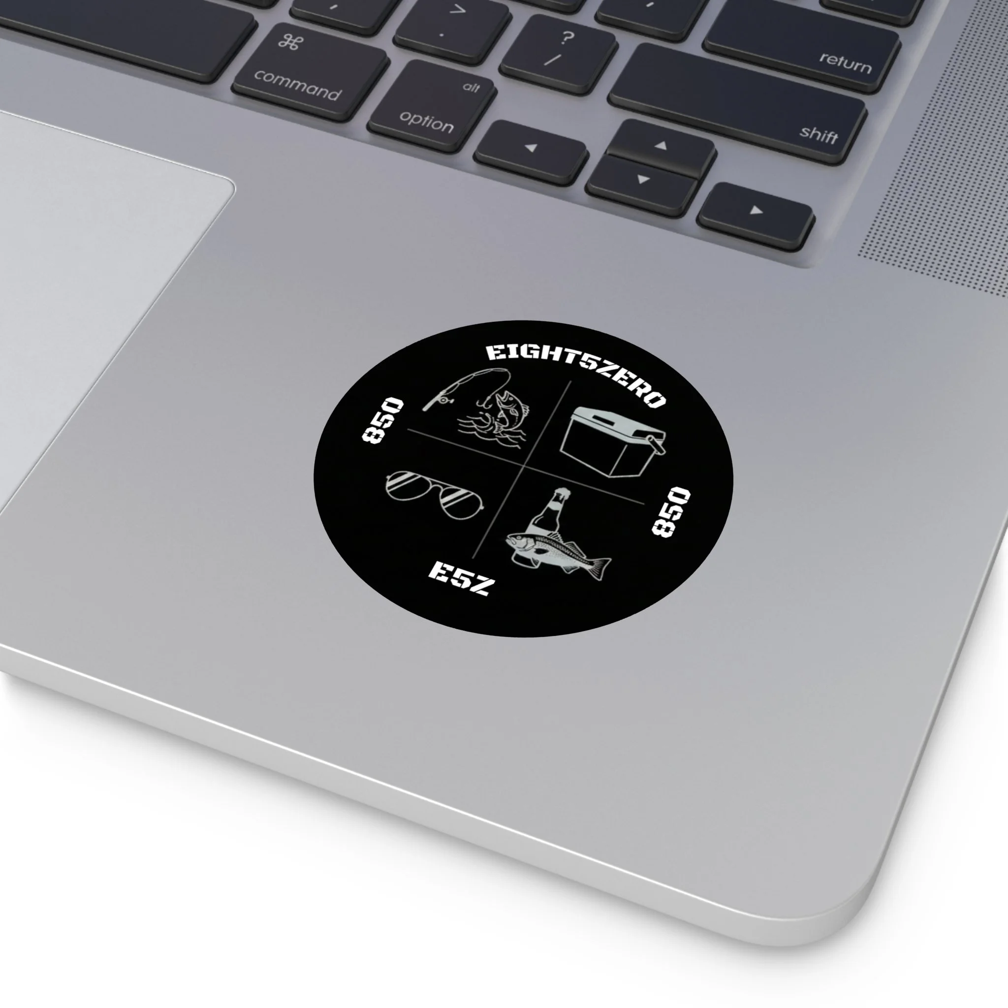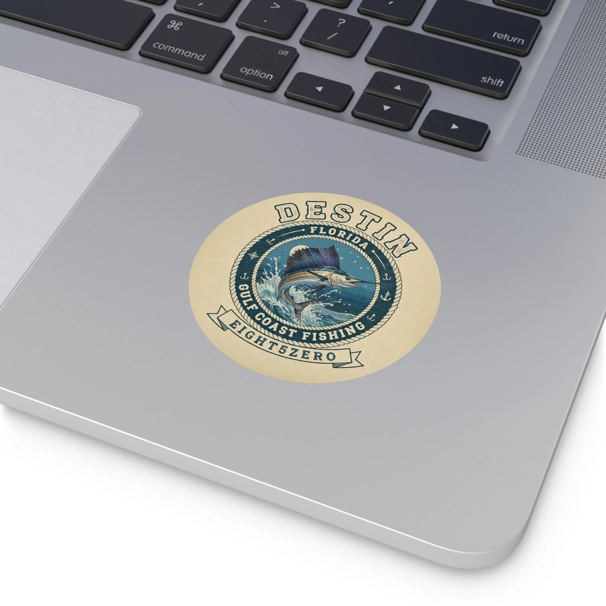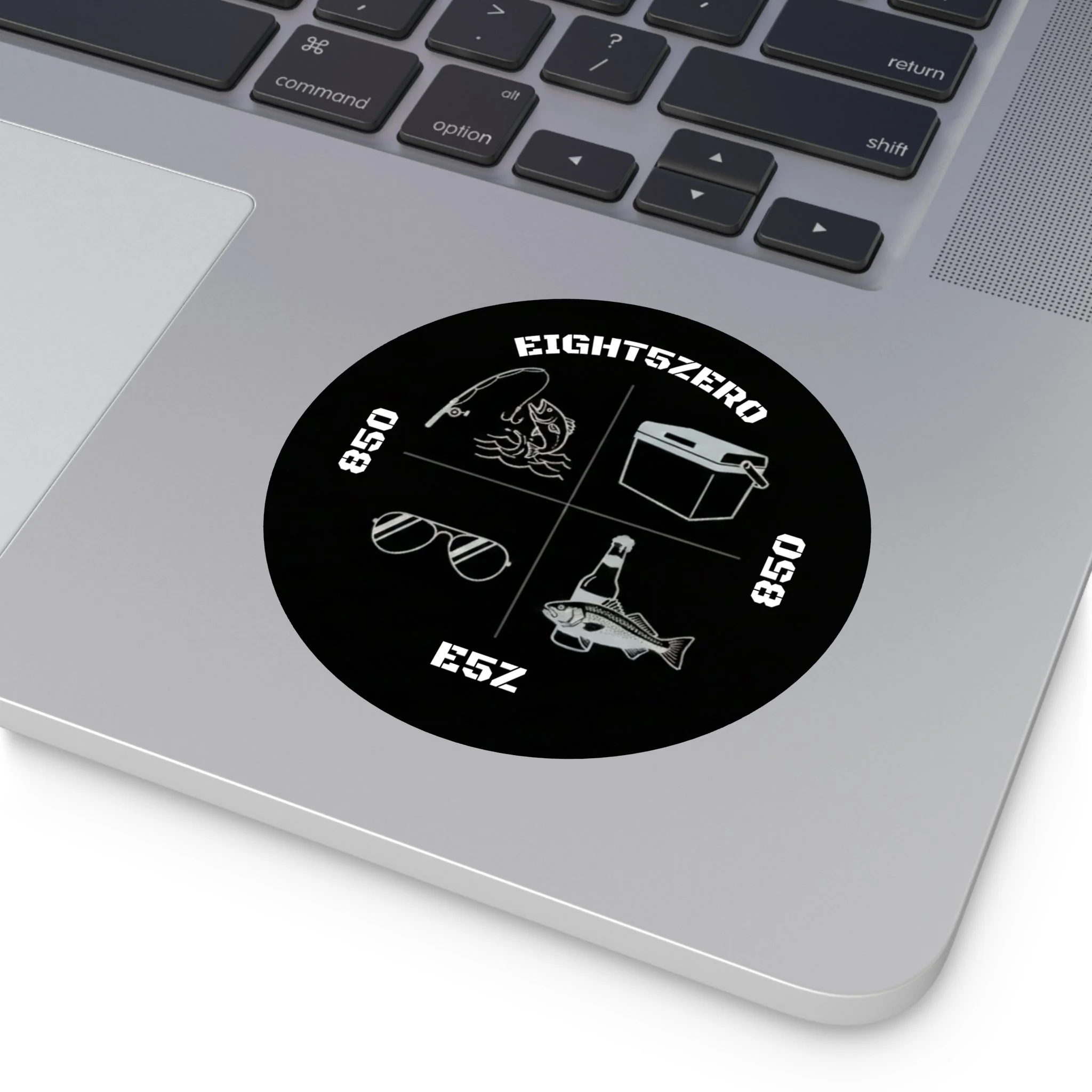 A glossy kiss-cut vinyl sticker celebrating the 850 Florida Panhandle lifestyle. Deep ocean blues and pearlescent highlights bring the 850 emblem and coastal icons to life — palm trees, beaches, bridges and small-town skyline — with a clean circular badge layout. The sticker adheres smoothly to laptops, journals, water-resistant surfaces and windshields, and reads clearly from a short distance, making it a subtle way to mark your gear or promote a local site or brand. The finish is bright and scratch-resistant, and you can choose white or transparent backing and multiple sizes to suit where you want to place it.